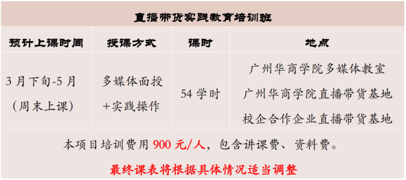 顺应区域政策与时代发展要求,我院联合继续教育学院打造“高校+直播带货的产教融合实践”新模式,在校内开设“直播带货实践教育培训班”,目前已经进入火热报名招生阶段啦!