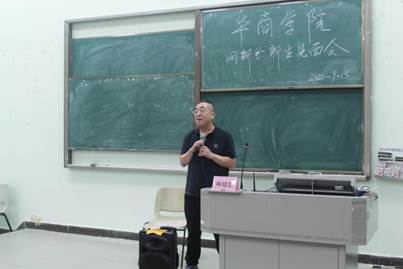 学生工作办公室主任谢清明老师代表学工队伍欢迎各位新生。在会议上,他简单讲解了学工部的老师组成以及工作任务。最后,他希望网新班的同学在接下来大学四年里支持学工部的各项工作。