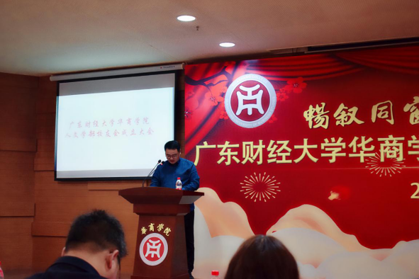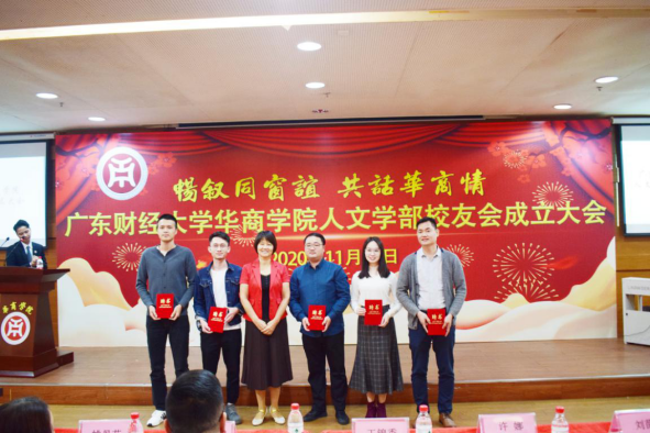 2020年11月14日,广东财经大学华商学院人文学部校友会成立大会在图书馆报告厅隆重举行,两百余名人文学部校友、在校师生齐聚一堂,回首青春岁月,畅叙同窗情谊,分享人生经历,共话学校发展。本次大会由校友会秘书长李旭伟主持。