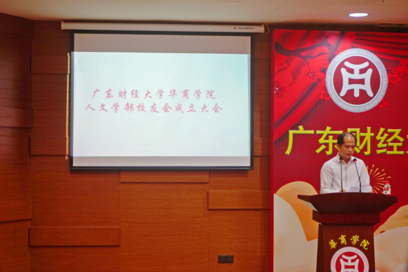 人文学部陈少鸿副主任代表人文学部对出席本次成立大会的校友们表示热烈的欢迎和衷心的感谢。他指出在过去的15年里,人文学部各院系向社会培养和输送了众多优秀人才,他们已在各行业、各领域取得了优异成绩,这是华商学院最好的名片,也是学校宝贵的社会资源和财富,是学校人才培养、教学科研、校企合作、招生就业、文化传承、服务社会等方面的重要力量和创新载体。人文学部高度重视校友工作,希望以华商建校15周年为契机,以成立人文学部校友会为抓手,对校友资源进行有效的整合,变潜在优势为现实能量,促进学部各项事业健康发展。希望校友会以扎扎实实的服务,为校友的创新创业铺路搭桥,为校友事业更好发展同心助力,为学校建设“百年名校”增光添彩,让人文学部校友会真正成为校友们的精神家园。