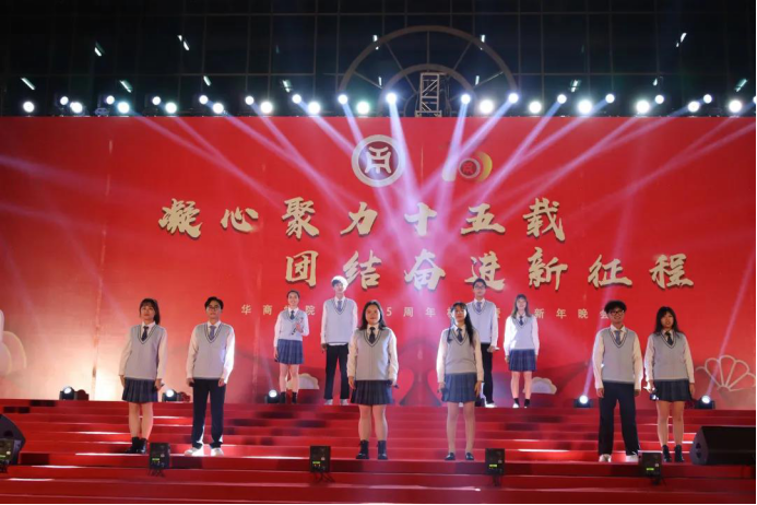 最后的谢幕环节上,我校以大合唱《歌唱祖国》作为收尾,深情表达了对祖国的歌颂,充分流露出华商人的浓浓爱国情。至此,本次校庆晚会在嘹亮的歌声中正式落下了帷幕。
