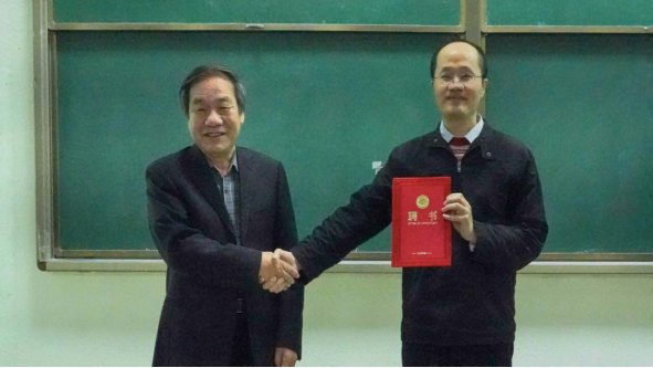 首先,传播与传媒学院院长赵维江教授为林升梁教授颁发聘请文书,敦聘林升梁教授为我院的客座教授。赵院长表示,很荣幸能聘请到林教授,希望林教授可以帮助到传院的发展,给传院的老师和同学们带来更多的学习交流机会,同时也对林教授即将开讲的“人机·交往·重塑:作为‘第六媒介’的智能机器人”讲座表示肯定,认为本次讲座将让我院师生受益匪浅。