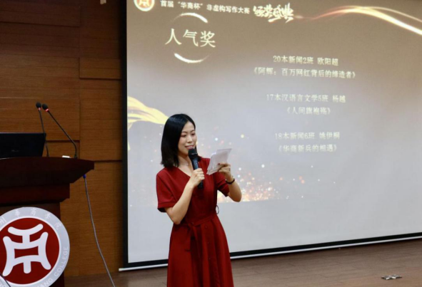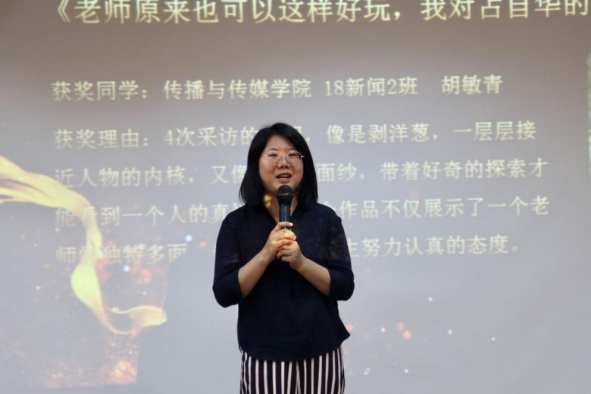 典礼上,梁园园老师希望同学们继续记录自己的生活,不要停下写作的脚步,这次比赛对于新闻学的学生来说只是一个开始。本次颁奖典礼中的颁奖词也是由梁老师撰写。