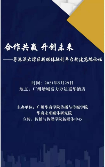 为进一步加深传播与传媒学院与业界合作关系,充分发挥未来媒体研究院的作用,搭建并完善传院与新媒体业界交流合作新平台,带动传院与业界建立产学研深度合作,广州华商学院传播与传媒学院与未来媒体研究院将于5月29日于广东省广州市增城区万达嘉华酒店联合举办“合作共赢 开创未来:粤港澳大湾区新媒体融创平台构建高端论坛”。