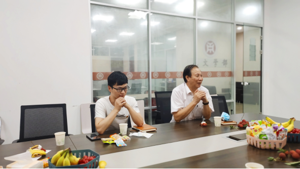 毕业生代表围绕“大学四年的收获和遗憾”和“毕业后的规划和去向”等话题积极发言,并结合自身情况对教师教学、社会实践、考研考公、未来发展等多方面提出意见与建议。如17本广告学班的杜育娜同学,分享了自身通过课余时间,认真学习视频创作、新媒体运营管理,最终被百度公司录用的经历。她指出目前学院在学生实践能力的培养方面虽然与过去相比有了很大进步,但依然还有较大的提升空间。17本新闻学3班洪晖格同学就考研问题提出了一些建议,希望学校能够提供更多的指导与帮助。与会老师认真听取了同学们的发言,不时就相关内容与大家讨论交流。