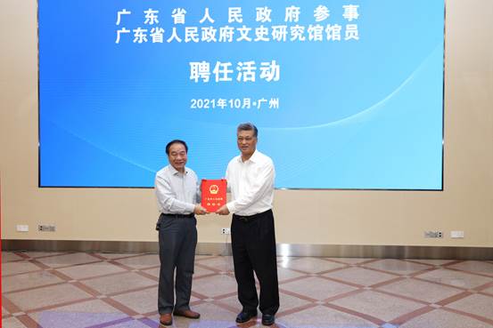 10月28日,广东省人民政府新聘省政府参事、省政府文史研究馆馆员聘任仪式在广州举行。省长马兴瑞出席仪式并向新聘省政府参事和省政府文史研究馆馆员颁发聘书,省政府副省长孙志洋宣读省政府的聘任通知,省政府秘书长叶牛平主持。