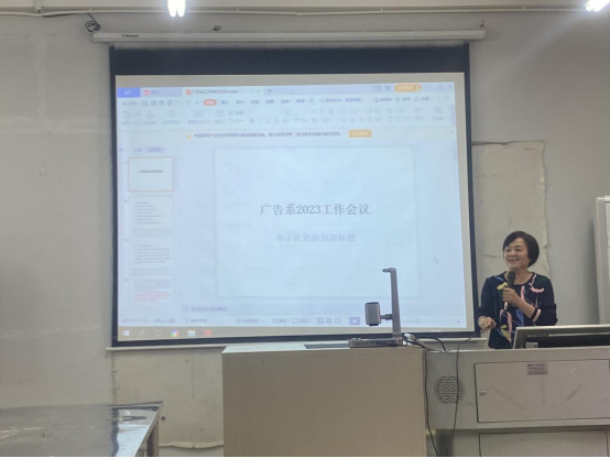 会议伊始,由广告系主任李苗教授就教学工作安排、一流专业建设、师资力量打造、研讨会举办、科研项目申报、学生竞赛指导、专题讲座举办、业界合作交流等方面回顾了2022年的主要工作。