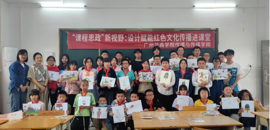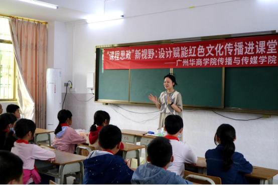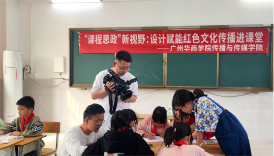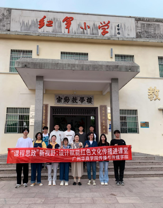 2023年4月10日,广州华商学院传播与传媒学院视频传播系老师及学生代表,一行12人,来到北塘村红军小学将设计与美育带进小学课堂,赋能红色文化的传播。