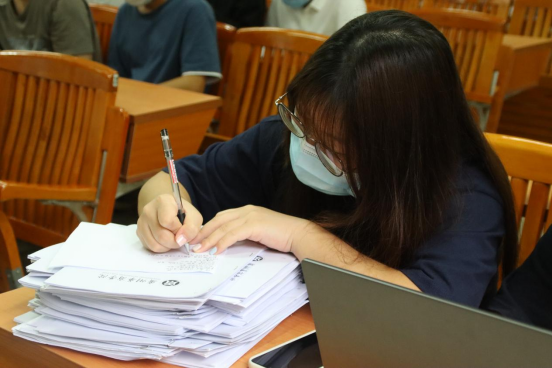 除评审老师和毕业生外,传播与传媒学院还招募了多位学生志愿者在答辩会现场进行会议记录、计时、整理资料等工作。期间,不时还有本系非毕业生的学生进现场旁听,提前感受答辩现场的氛围,为自己未来的答辩做好心理准备。