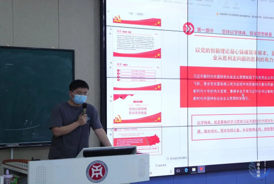 坚持以学铸魂,筑牢思想根基。以党的创新理论凝心铸魂筑牢根本,是党和国家事业从胜利走向新的胜利的有力保证。以学铸魂就是要做好学习贯彻习近平新时代中国特色社会主义思想的深化、内化、转化工作,从思想上正本清源、固本培元,补足精神之钙,把握思想之舵。杨伟捷老师表示,我们在平时的课上应该认真学习,提高自己对马克思主义的认识,深刻了解中国共产党的精神,坚定理想信念。