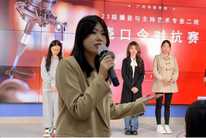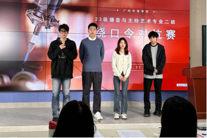 为助力2023级播音与主持艺术专业同学检验自身专业情况、激发专业学习热情,11月20日晚上19点30分,传播与传媒学院口语传播系播音与主持艺术专业在广州华商学院肇庆校区8号楼108举办2023级专业技能——绕口令对抗赛。