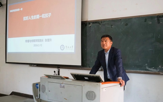 首先,张晋升院长以“扣好人生的第一粒扣子”为主题为在场的同学们上了思政第一课。他指出,青年时期是人的一生中的黄金时期,在此期间树立正确价值观,扣好人生扣子至关重要。青年的价值取向决定了未来整个社会的价值取向,而青年又处在价值观形成和确立的时期,抓好这一时期的价值观养成十分重要。青年学生要因势而谋,立足大局;应势而动,不墨守成规;顺势而为,在伟大时代成为卓越的人。