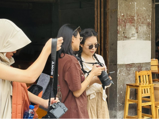 学生在开平进行绘画写生、视频拍摄和摄影创作