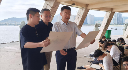 为进一步提升《设计采风》课程教学质量。2023年4月14日至15日,传播与传媒学院院长张晋升、副院长王健、院长助理程海涛,学院办公室主任罗坤贤深入阳江海陵岛进行教学检查。在检查过程中,带队老师谭玉怡、许冰芸和李荣邦介绍并展示了学生们创作的阶段性成果。