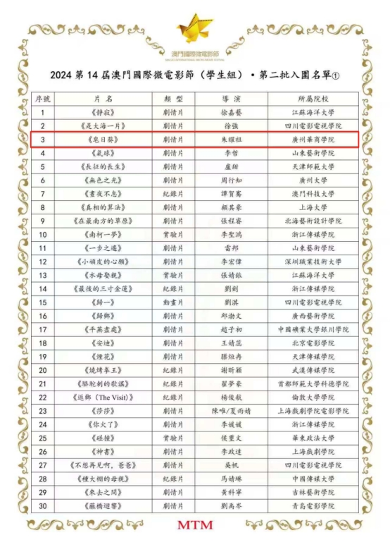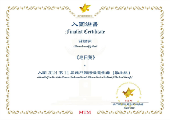 澳门国际微电影节自2011年成立以来,已成功举办13届,是发掘影视新晋人才、促进国际交流、拓展传播媒介、连接产业平台的重要平台。该电影节汇集最专业、最权威的专家评委,联合国内影视专业院校及业内资深团队,共同搭建了一个集创作、传播、交流于一体的国际微电影平台。此次入围,无疑是对我院网络与新媒体专业学生创作水平和学院教学质量的双重认可。