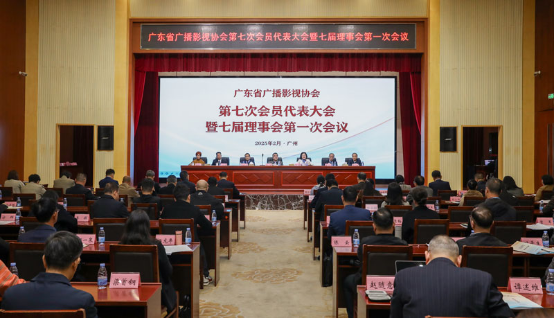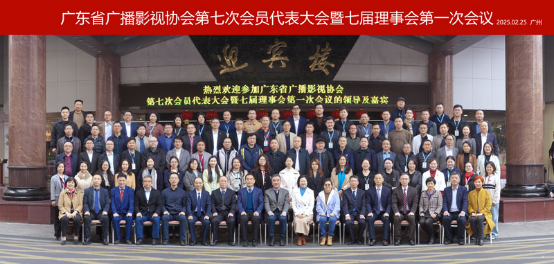 2025年2月25日,广东省广播影视协会第七次会员代表大会暨七届理事会第一次会议在广州隆重召开,中国广播电视社会组织联合会副会长王求,中国广播电视社会组织联合会学术部编审、学刊编辑部副主任樊丽萍,广东省社会组织总会会长王长胜,广东省社会组织管理局原副局长徐祖平,广东省广播电视局党组书记、局长王晓,广东省广播电视局党组成员、副局长陈小锐到会指导。王求副会长、王晓局长在会上致辞。会议顺利完成法定议程,选举产生新一届理事会领导班子,曾广旺同志全票当选第七届理事会会长,我院张晋升院长当选副会长。