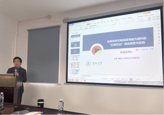 暨南大学教务处处长、新闻与传播学院院长刘涛教授以其深厚的学术底蕴和丰富的实践经验,为我们深度解析了全媒体时代下新闻采写能力提升的“五维互动”模式探索与实践。他从教学痛点分析入手,提出了创新设计方案,并展示了教学创新成效及课程建设特色与成果,为教师们提供了宝贵的理论指引和坚实的框架支撑。刘涛教授还介绍了多种前沿的教学创新方法和工具,如在线教学平台、虚拟仿真技术等,鼓励教师们积极尝试新技术,以适应信息化时代的教学需求。