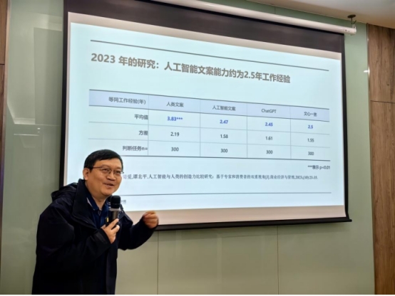 秒针营销科学院院长谭北平详细阐述了人工智能在教育、企业中的应用及重要性。李苗副院长认可人工智能技术能精准预测并满足人类需求的强大功能,但也提出疑问:人工智能是否会过度控制人类,进而在教育领域中产生负面影响,引发深入探讨。何鹄志主任总结称传播与传媒学院需把握AI契机,革新观念与技术,优化课程,凸显特色,化解风险,锻造师资队伍,为学院未来教育发展探路。