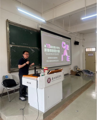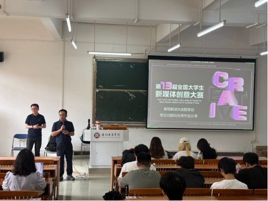 2025年5月20日下午1点,第13届全国大学生新媒体创意大赛宣讲会在广州华商学院广州校区励志楼C402举行,北大方正资深讲师张志宇为网络与新媒体专业2022级、2023级、2024级学生深度解读赛事规则、创作方向及行业趋势,现场座无虚席,互动热烈。宣讲会由数字传播学院网络与新媒体系主任张志荣副教授主持。