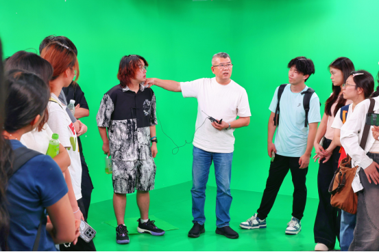 在演播厅实践环节,广州黄埔融媒体中心方伟文技术主管为同学们系统讲解了节目制作的全流程技术规范,并指导学生亲身体验现场导播、镜头切换等核心岗位操作。随后,方老师带领同学们进入后期制作区,通过实际案例演示剪辑技巧,从镜头组接到节奏把控,逐一解析专业制作“诀窍”。同学们踊跃提问,方老师结合行业经验给予了细致解答,现场互动气氛热烈。