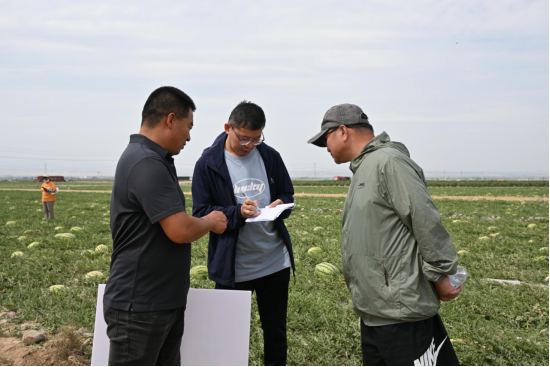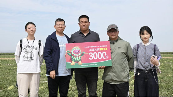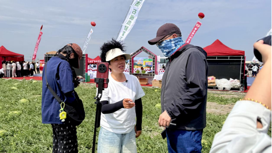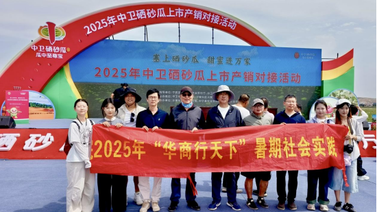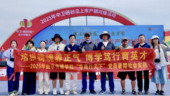 7月17日上午,2025年中卫硒砂瓜上市产销对接活动在沙坡头区兴仁镇兴仁村举行,我院暑期社会实践团10位师生来到现场调研,站在西瓜田埂上采访瓜农,帮助网红推销硒砂瓜,当地瓜农纷纷竖起了大拇指。政府官员、瓜农、经销商、网红达人和高校师生,共同投入到这场别开生面的西瓜产销对接会。