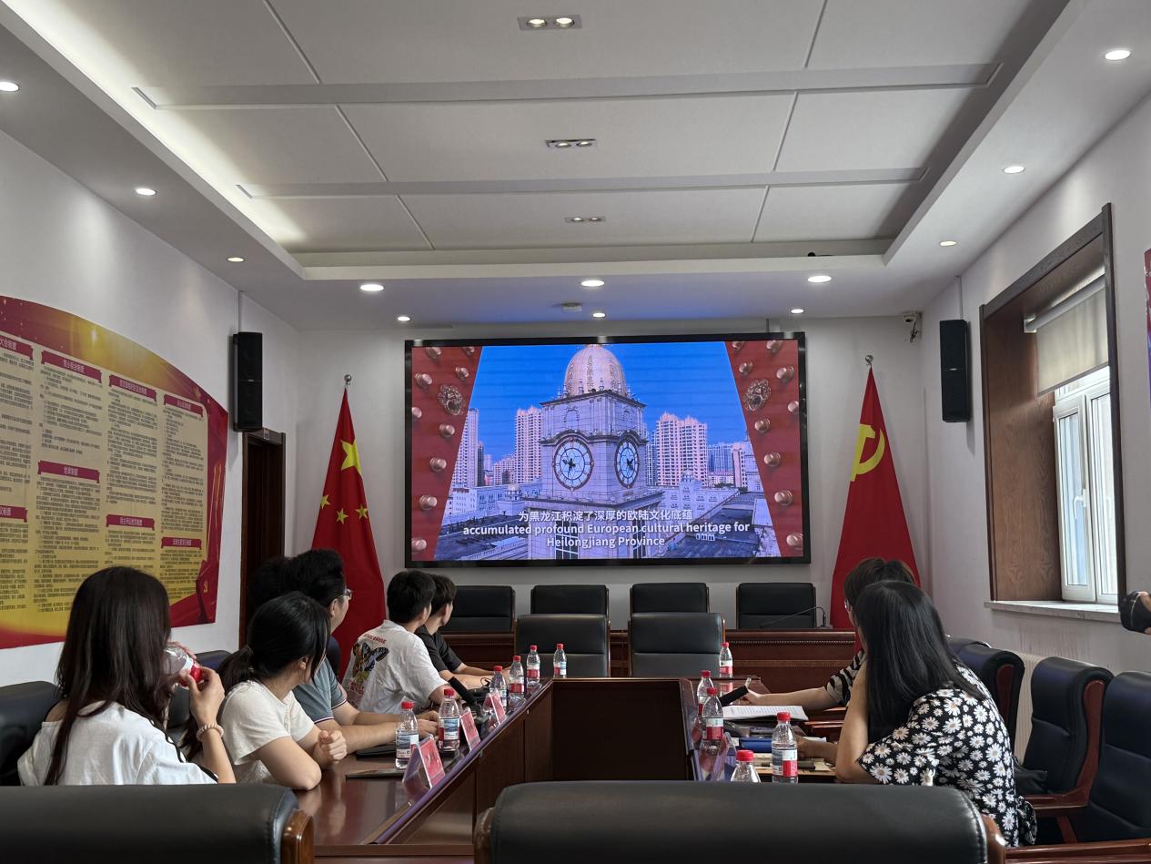 16日下午,团队赴黑龙江省国际博览发展促进中心,与展览部负责人孙贺主任展开对话。孙主任详细解读、“哈洽会”和“中俄博览会”作为中俄经贸枢纽的平台价值,师生则结合广东跨境电商经验,探讨边境特色产品如何通过品牌包装打入南方市场等问题。赵安琪老师提出“构建东北亚产品文化故事库”的建议,获中心领导高度认可,助力后续的跨境品牌的研究积累真实的案例素材。