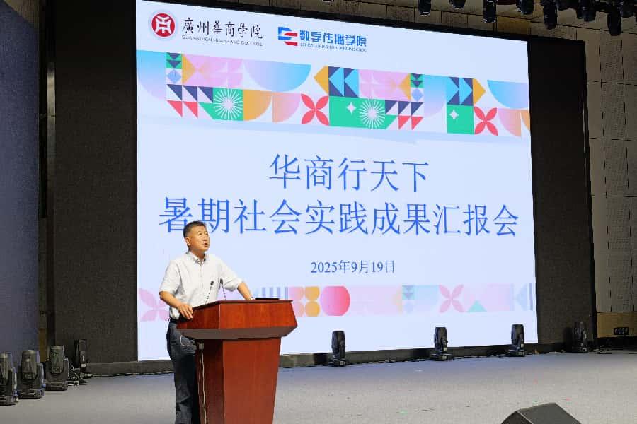 9月19日,数字传播学院在实践教学基地增城区融媒体中心一楼演播厅举行2025年“华商行天下”暑期社会实践活动成果汇报会。增城区融媒体中心领导、学院领导班子、全体教师及全体实践团队成员参会。王健副院长主持会议。