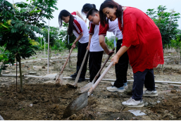实践团队师生种植与养护果树