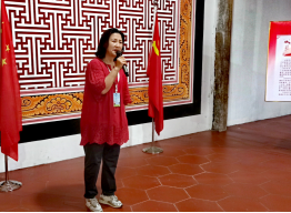 曹老师在“两弹一星”宣讲会上进行文艺汇演展示