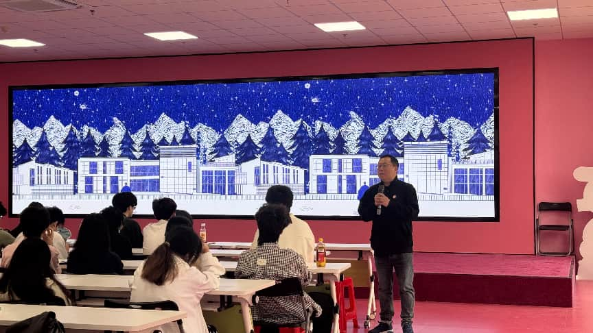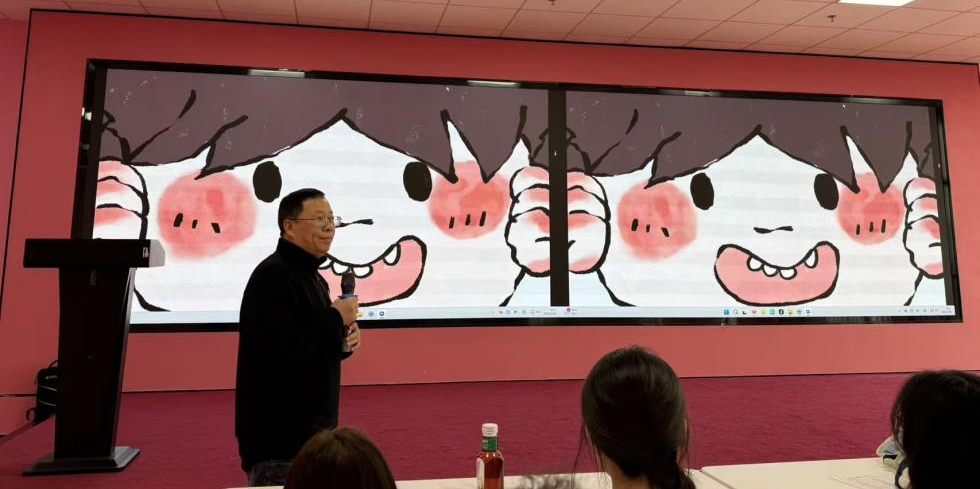 叶教授以其渊博的学识和风趣幽默的语言,迅速拉近了与动画专业学生们的距离。他表示艺术的核心是真诚,拒斥AI炫技与创作惰性,要重拾本土语言,方能融洽国内,接轨国际。作为人工智能时代的艺术设计、传媒人,一定要让AI听我们的,不是我们听AI的,科技再变,人心人味不变。真正的创作,应该是“我的心”动了,手才会跟着动。文化有根,艺术有魂,区域有别;坚守传统本色,方能讲好中国故事。